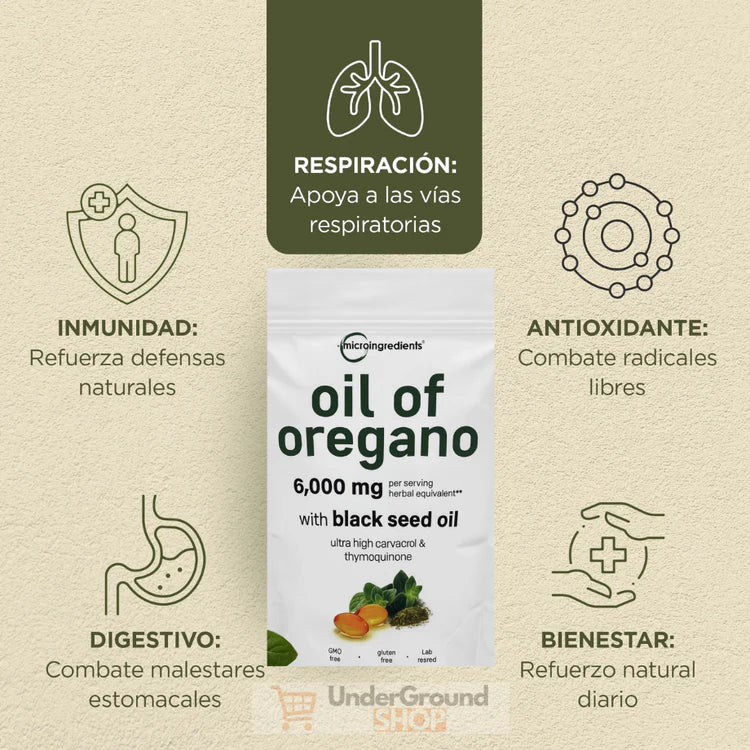 🌿 Con el Aceite de Orégano, refuerzas tus defensas de forma 100% natural gracias a la combinación de aceite de orégano + aceite de semilla negra, dos aliados reconocidos por su poder antioxidante y protector.